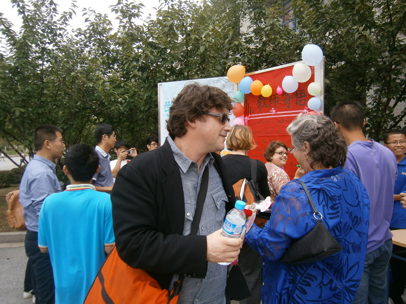 教师寄语墙则由现场的老师们写下对学生的希望和嘱托。在南一食堂门口,自动化学院2011级学生党支部的全体党员和积极分子每人手拿一束包装精美的康乃馨,献给前来就餐的教师,并道声:“老师,教师节快乐,您辛苦了!”而后,邀请老师到教师寄语墙上写下对学子们的期望:多一点人生的规划,少一点混混沌沌过日子;当你昂首挺胸疾走的时候,亲爱的孩子,请留神那脚下的石坎或断沟等寄语表达了老师们对学子们的深深祝福和殷切希望。教师们手捧鲜花阅读了学子祝福墙,脸上洋溢着幸福与欣慰的笑容。