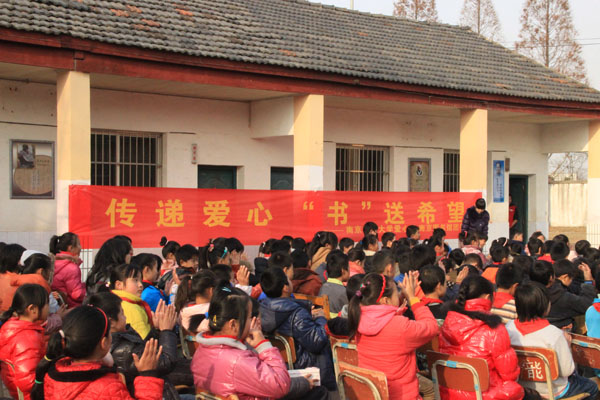 胡德宝校长的欢迎词拉开了捐赠仪式的序幕,他对南京邮电大学和南京图书馆领导的到来表示热烈欢迎,并代表全体师生对 “爱心图书角”的建立和图书捐赠表示衷心的感谢。自动化学院党委副书记高志华代表南邮爱心社承诺将长期做好支教志愿活动,用爱心为孩子们输送知识、传递希望,他鼓励孩子们要多读书、读好书,通过知识改变自己的命运。最后他对南京图书馆对本次活动的大力支持表示感谢。南京图书馆读者服务部朱志伟主任在发言中提到南邮爱心社长期坚持的义务支教活动和自发捐书举动令他们十分感动,南图得知有该项活动后立即决定将“传递知识,书送希望”活动纳入南图“爱心无界,知识无边”的系列活动中,将围绕“五个一”系列活动展开,分别是向小朋友捐赠一套图书,为小朋友免费办理一张少儿借阅证,请学生代表参观一次南京图书馆,给学生代表进行一次电脑培训,请学生代表观看一部电影。随后南邮和南图的领导为孩子们赠送了图书和南图少儿借阅证。最后由张敏书记和朱志伟主任分别进行了“南京邮电大学爱心社志愿服务基地”和“南京图书馆文化志愿服务基地”的揭牌仪式。整个活动在少先队员代表充满感激的发言中圆满结束。
