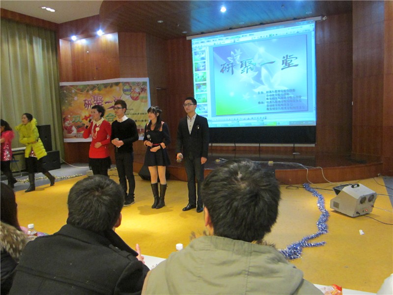 2012年12月26日晚自动化学院、经济与管理学院、教育科学与技术学院三院联合举办的“研聚一堂,双旦晚会”在大学生活动中心三楼多功能厅火热上演。自动化学院研究生辅导员陈素兰老师,经管院肖国丰老师,教科院张剑波、张超老师,校研会主席团及部分兄弟院系的研会主席应邀出席了这次晚会。