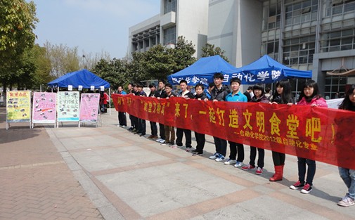 自动化学院本2012级学生支部认真学习党的十八大精神,积极开展“为民,务实”的主题实践活动。针对学校食堂存在的种种不和谐的现象,自动化学院本2012级学生党支部经过精心准备,于3月26日和27日中午在学校南二食堂前广场开展“食堂文明周”倡议活动。