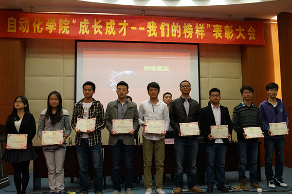 为深入学习贯彻党的十八大精神,自动化学院通过培育选树学生先进典型,在全院范围开展了“成长成才——我们的榜样”主题教育,评选出了一批在学习、科研、社会工作等方面表现突出、成绩显著,充分发挥先锋模范作用的集体和个人。2013年4月18日下午,自动化学院 “我们的榜样”表彰大会在仙林校区行政楼一楼报告厅隆重举行。南京邮电大学团委副书记李晓华老师、自动化学院党委副书记黄建龙老师、自动化学院党委组织干事陈素兰老师及自动化学院各年级辅导员出席了本次大会。本次大会由自动化学院分团委书记叶晓勤老师主持。