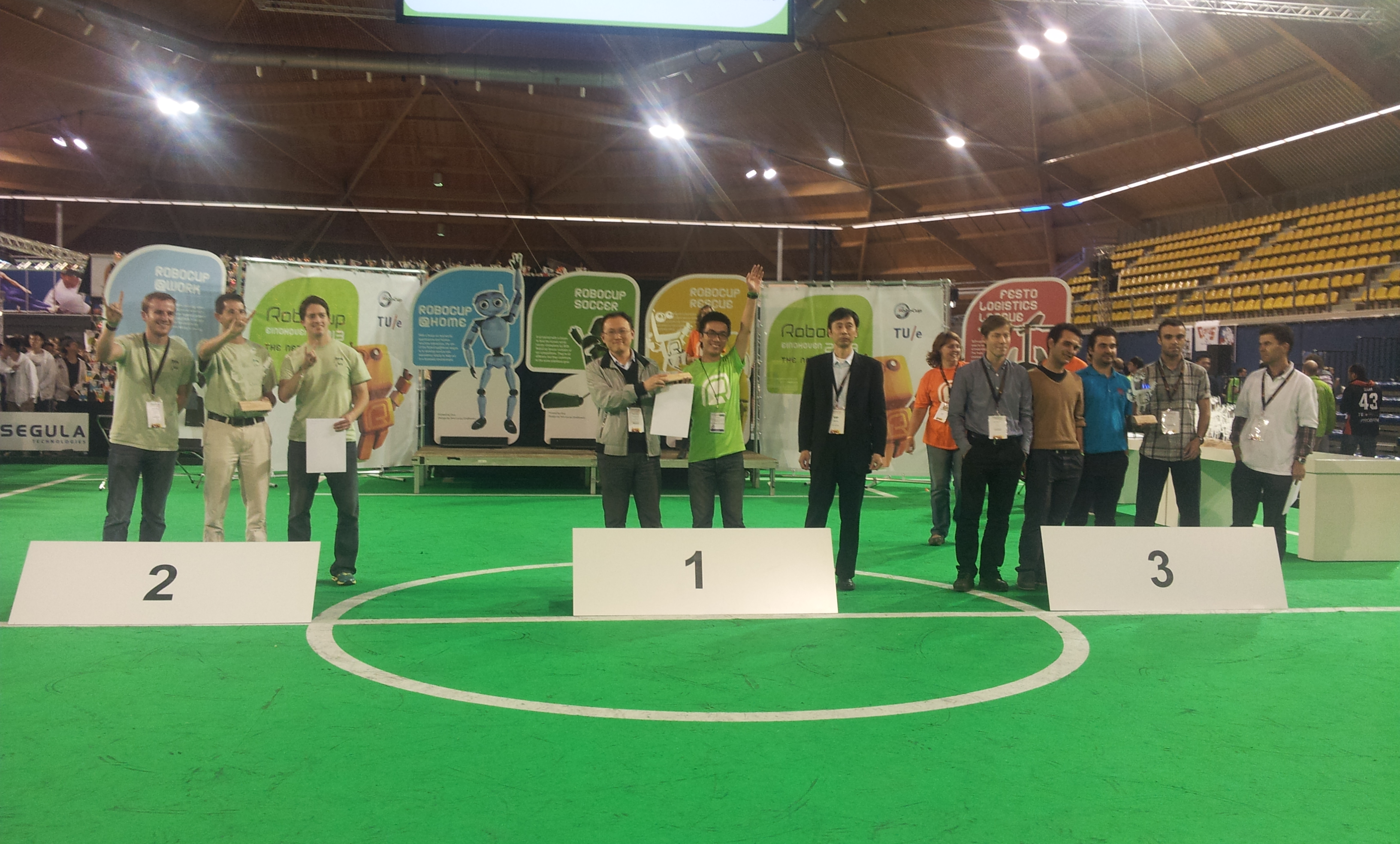 2013年6月24日-7月1日,我校Apollo3D仿真机器人足球队在荷兰埃因霍温举行的2013 RoboCup机器人足球世界杯中,再次问鼎3D仿真机器人足球项目的冠军,这也是我校继2010年在此赛事获得的第二个冠军。