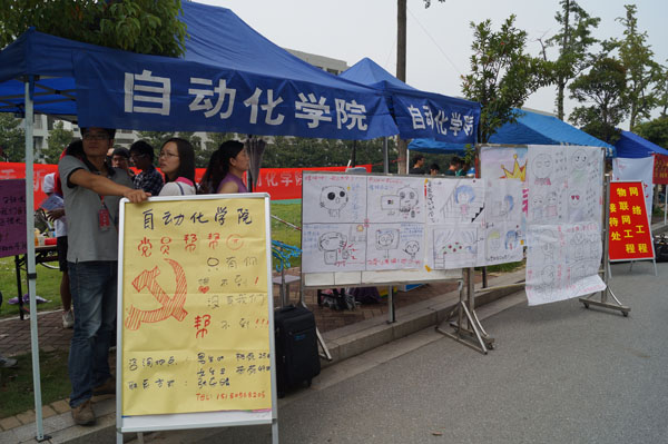 自动化学院党委对学院的迎新工作给予了高度关注和悉心指导,在学院团委的组织协调下,学院学生会和广大志愿者为迎新工作进行了充分准备。全体迎新志愿者们始终保持着饱满的热情,认真负责,周到细致,努力让所有新生在自动化学院感受到如家般的温暖。我院的迎新工作得到了新生和家长们的一致好评。下午,杨震校长和刘陈书记分别来到我院迎新帐篷慰问,了解我院迎新工作进度,并对我院的迎新工作给予了充分肯定。另外,今年我院特别增设“党员帮帮团”,在新生宿舍门口设立咨询点,及时为广大新生和家长解决问题。院学生会还别具匠心的通过漫画形式呈现了大学生活片段,让新生在会心一笑的同时增进了对大学生活的了解。