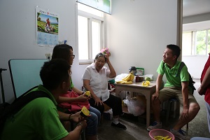 倾盆的大雨并没有阻挡队员们的脚步,成员们带着慰问品,在社区负责人黎元的带领下,分组走访了社区3名归侨独居老人。