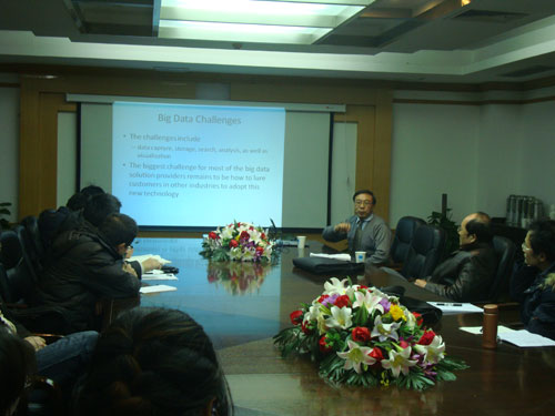 Yu-Chu Tian教授首先结合当前IT技术发展的前沿,通过具体的应用介绍了大数据的定义、特点和研究紧迫性。深入的分析了大数据处理研究所面临的关键技术问题和挑战,尤其是现代企业对大数据技术的认知度问题。结合生物信息处理当中的多输入多输出模型,分析介绍了云计算以及其所提供的不同层次的服务,并对大数据处理与云计算的关系进行了阐述。最后,对其目前所开展实施的澳大利亚最为先进的大数据实验室组建以及相关研究成果进行了介绍,展示了大数据处理和云计算在数据处理、存储、以及服务等方面所具备的技术先进性。报告会极大地扩展了与会师生在大数据以及云计算方面的视野,会后的讨论及提问十分热烈,Yu-Chu Tian教授也热情解答了老师和同学们的提问。主讲嘉宾简介:Yu-Chu Tian教授,计算机科学家,系统与网络领域澳大利亚研究理事会国际专家,澳大利亚昆士兰科技大学计算机网络与通讯系主任。1993年于浙江大学获得工业自动化博士学位,2009年获得悉尼大学计算机和软件工程博士学位,1987年加入海军工程学院任讲师,1994年-1998年任浙江大学副教授,1996年-1998年香港科技大学访问学者,1998年加入澳大利亚科廷科技大学任Research Fellow,2000年入选4位西澳大利亚战略研究员之一,自2002年以来,入职澳大利亚昆士兰科技大学,历任讲师、高级讲师、副教授,目前担任教授、系主任,2007年成为马里兰大学计算机科学系客座教授。Yu-Chu Tian教授共发表了148篇论文,h指数达到20,获专利1项,研究领域包括:复杂系统工程、智能系统、实时计算和嵌入式系统、计算机网络和无线通讯、大数据处理、分布式云计算以及控制理论和工程。Yu-Chu Tian教授组建了昆士兰科技大学计算机网络与通讯系,领导建立了澳大利亚第一个大数据实验室,承担了数个大型ARC和CRCs研究计划。Yu-Chu Tian教授还担任了Information Sciences(Elsevier)和Asia-Pacific Journal of Chemical Engineering (Wiley)副主编,以及ACM’s Computing审稿专家。