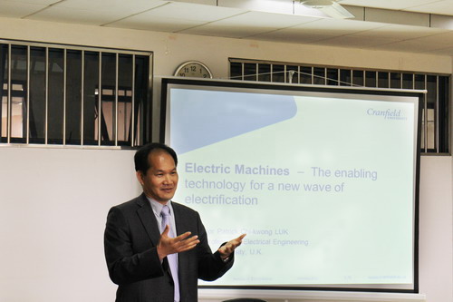 2014年10月17日上午,应自动化学院的邀请,英国Cranfield大学Patrick Luk教授来我校作了题为“Electric Machines and Drives - The enabling technology for a new wave of electrification”的学术报告。 报告中,Patrick Luk教授首先介绍了电机和电力电子与电力传动的基础理论和应用,着重阐述了可再生能源系统以及电动汽车与飞行器中的多电气结构研究中的关键问题,如电动汽车充电与智能电网的信息互动、基于3D模型下的有限元仿真分析电机磁场与相关设计问题;最后介绍了所在实验室目前在研的重点课题,以及相关领域研究的最新进展。 本次学术报告由自动化学院院长王保云教授主持。报告会结束时,Patrick Luk教授和与会师生进行了热烈的互动交流。Patrick Luk教授对自动化学院近年来在智能电网、电力电子与电机拖动等领域取得的成绩表示赞赏。同时,Patrick Luk教授表示将加强与我院在无线电能传输技术、高速永磁电机技术等具体研究方向的学术交流与合作。 报告人简介: Patrick Chi-Kwong Luk教授现在是Cranfield大学电气工程系的首席教授以及电力与驱动研究小组的负责人。 Luk教授领导电机研究小组目前正研究开发应用于交通运输的下一代可持续牵引电机,他目前还负责着一项由中英两国著名学术机构、研究机构和企业共同参与的研究项目,主要是开发应用于未来V2G中的新型驱动系统。 Luk教授获得过很多奖项,包括2011年度IET 电力应用优秀奖以及2009年度KTN Network最佳奖。他曾为包括三菱电机(英国)、Lotus Engineering以及Lockheed Martin等世界一流企业提供过咨询服务,并拥有10项英国和美国专利。Luk教授目前已发表140余篇论文,并出版了几部专著。 Luk教授是IEEE 高级会员,担任着IEEE UK&RI GOLD, IEEE UK&RI Professional Activities, 和IEEE UK&RI Power Electronics Chapter的主席。此外,他还担任IEEE Transactions on Power Electronics和IET Journal for Renewable Power Generation.的副主编。 |