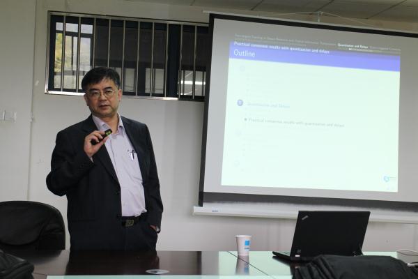 | 4月29日下午,香港城市大学数学系Daniel W. C. Ho教授应自动化学院邀请来我校讲学,在仙林校区第五教学楼207会议室作题为“Distributed Networked System under Imperfect Communication Constraint”的学术报告。 Daniel W. C. Ho教授对现有分布式多智能体网络系统理论研究作了系统的报告,着重讲解了网络化控制的三个热点研究问题,即无线传感器网络的目标跟踪、基于量化通信和时延的分布式一致、基于事件触发机制的网络化控制。Daniel W. C. Ho教授指出了网络化控制的多个热点研究方向,并与大家分享了科研和论文写作的个人心得。 报告会结束时,与会教师、学生与Daniel W. C. Ho教授就相关热点问题进行了交流。 主讲嘉宾简介: Prof. Daniel W. C. Ho received BSc, MSc and PhD degrees in mathematics from the University of Salford (UK) in 1980, 1982 and 1986 respectively. From 1985 to 1988, he was a Research Fellow in Industrial Control Unit, University of Strathclyde (Glasgow, Scotland). In 1989, he joined the Department of Mathematics, City University of Hong Kong. Prof. Ho serves as Associate Editor for five international Control journals including Journal of Franklin Institute, IET Control Theory and its applications and Asian Journal of Control. He is recipient of “The Best paper award” from the 8th Asian Control Conference. In 2012, he is honored to be the Chang Jiang Chair Professor, Nanjing University of Science and Technology, awarded by Ministry of Education, China. Recently, he has been named in the list of Highly Cited Researchers 2014 published by Thomson Reuters. His general research interests are estimation and filtering theory, complex dynamical distributed networks, multi-agent networks, nonlinear singular systems and stochastic systems.