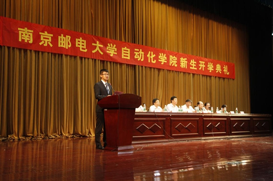 2015年9月5日下午,自动化学院2015级新生开学典礼在仙林校区青春剧场举行。南京邮电大学党委常委、副校长王国平教授、自动化学院院长岳东教授,党委书记姜文杰教授,党委副书记范结兵老师,分团委副书记汪颖老师以及全体教授、各系中心主任和各年级辅导员出席了大会。大会由院党委副书记范结兵老师主持。