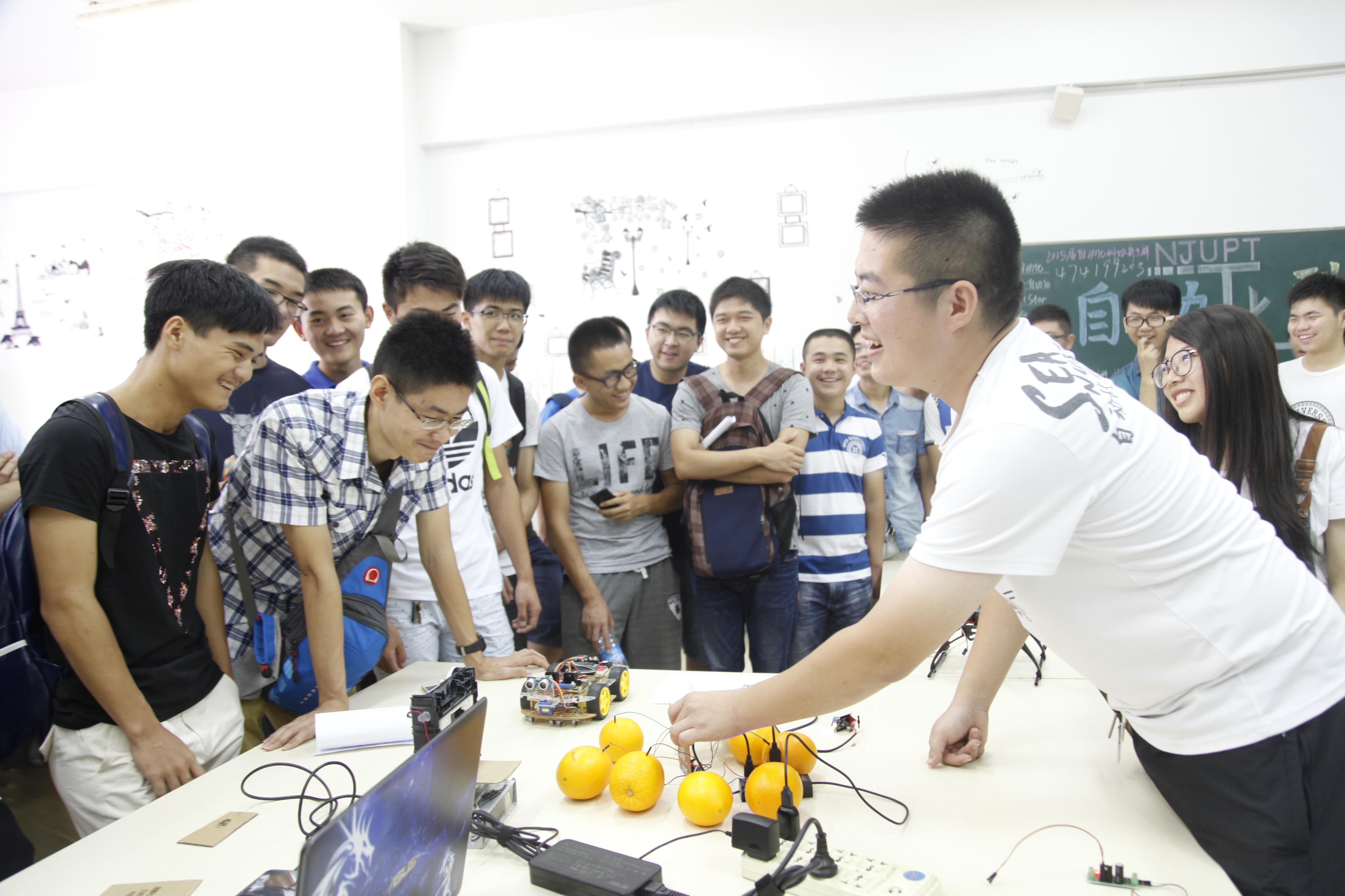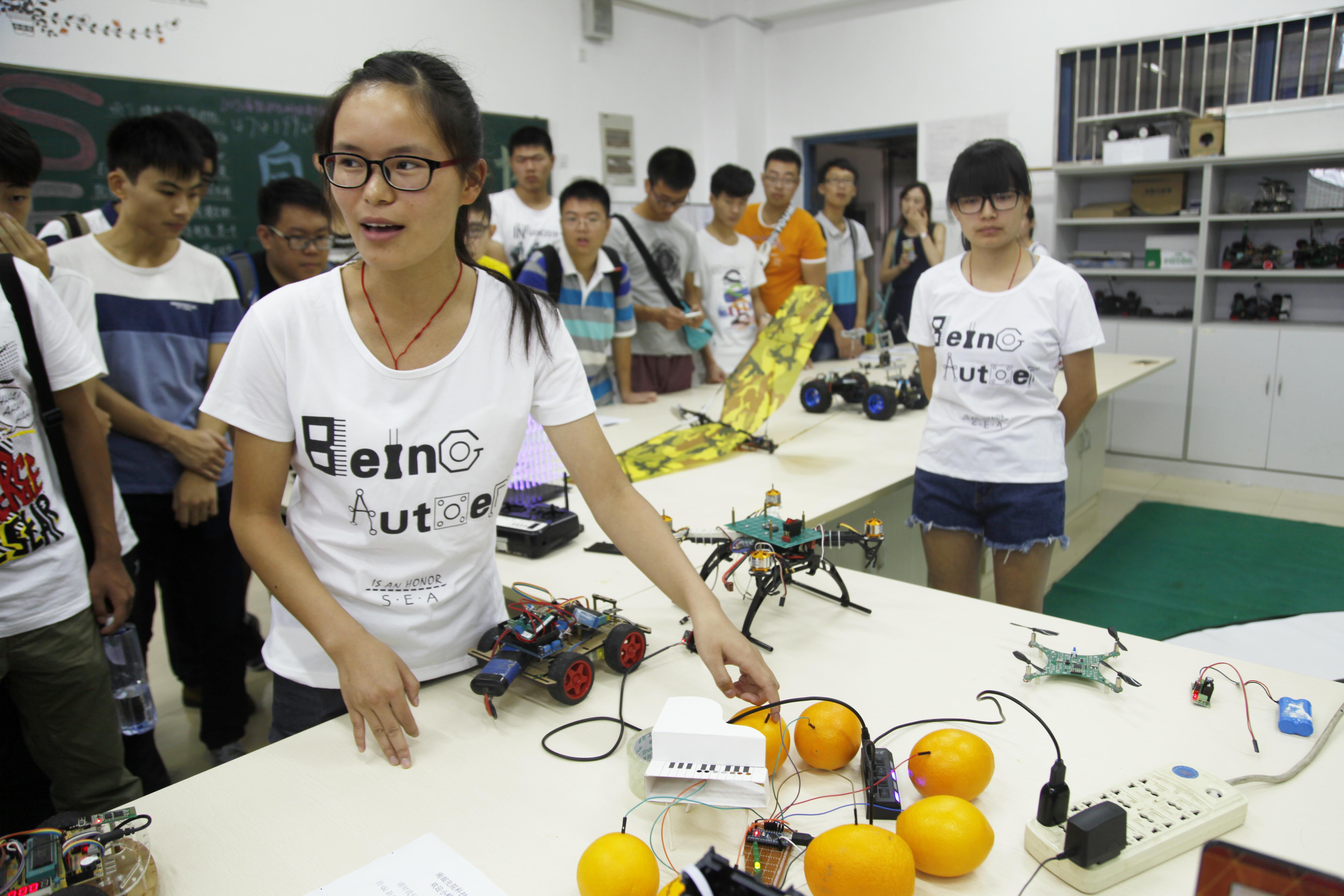 九月六日早上八点半,在自动化学院科协的组织下,我院2014级新生由班级负责人的带领,进入自动化学院科协活动室进行为期半天的参观。
