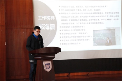 14级学生郝海晨作为工作榜样,就如何在学习、社团、班委工作中找到平衡同大家分享了自己的经验:来自15级的学习榜样廖倩颖则强调了大学时代学习的重要性,并分享了自己的学习方法和心得。