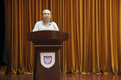 随后,自动化学院院长岳东教授向新生详细介绍了学院专业信息、专业方向和师资队伍,告诫新生要调整心态,明确目标和学习方向。同时教师代表曹科才教授也指出大学是人生的另一个起点,同学们应当培养自我学习和解决问题的能力,同时也要常怀家国之情。