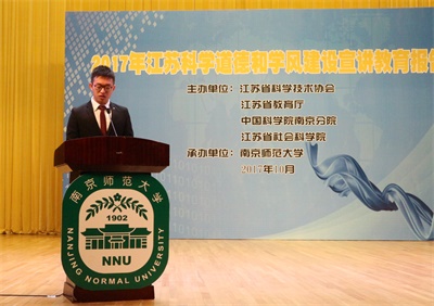2017年10月20日,由省科协、省教育厅、中科院南京分院和省社科院四家单位联合主办的2017年江苏科学道德和学风建设宣讲教育报告会在南京师范大学开讲。江苏省各高校代表,中科院南京分院以及相关科研院所代表共一千多人参会,我校各学院教师代表和自动化学院学生代表共四十余人在党委研究生工作部部长张翼老师的带领下参加了本次教育报告会。