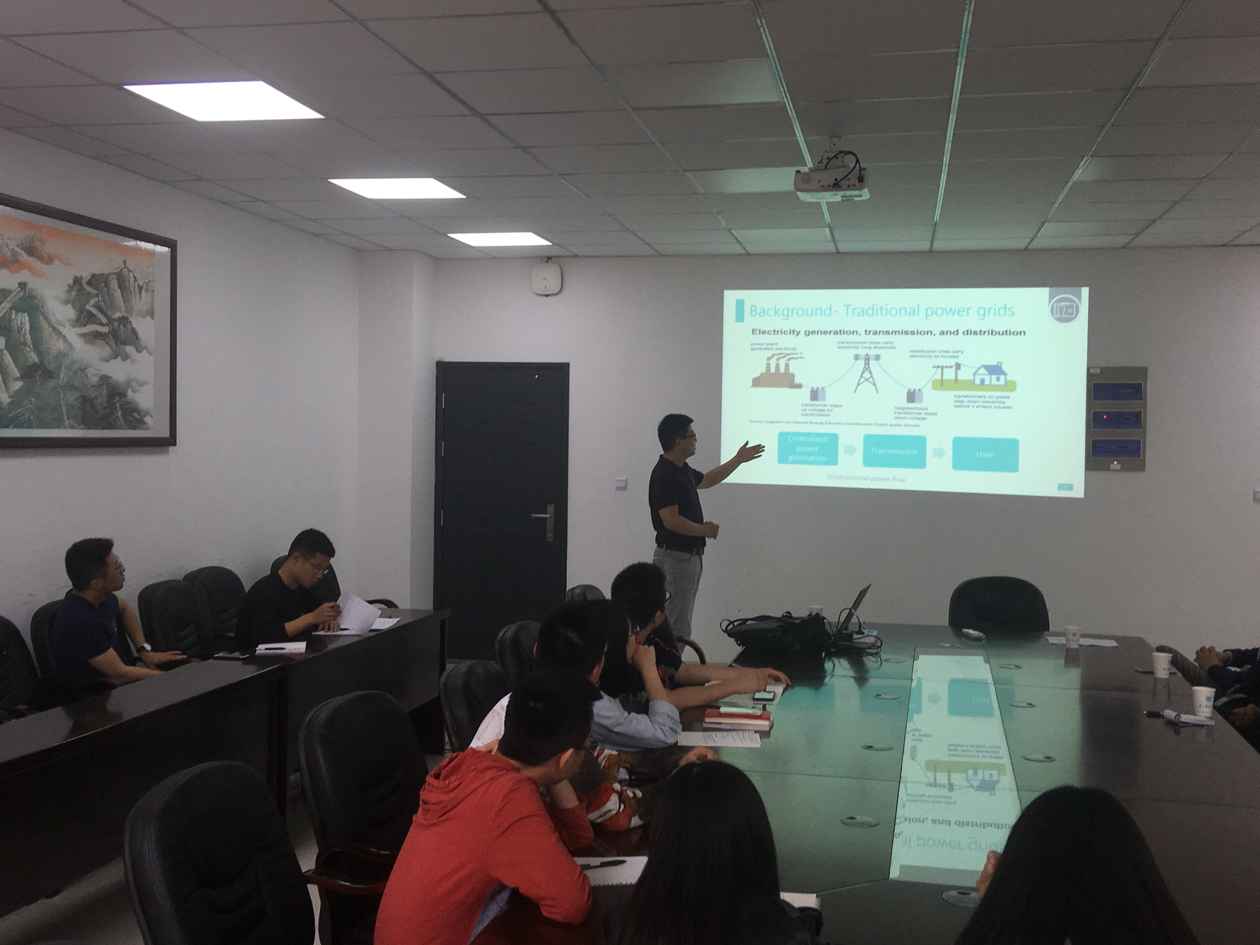 Zhong Li教授介绍了一种新型的微电网拓扑与控制策略,讨论了光伏等可再生能源的有效利用及分布式智能能源管理控制策略,从谐波、功率因数和无功功率等方面深入分析,提出了许多新型的概念和前沿的技术。讲座结束后,Zhong Li教授参观了自动化院智能微电网实验室,并与自动化学院教师就智能微电网发展方向和前景进行了专题讨论。