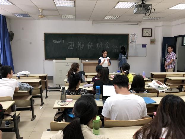 会议第一项,由团支书对候选人做基本的候选人推优条件介绍。包括成为积极分子的时间,已交思想汇报篇数,学习成绩和平时表现等。使大家对候选人和推优标准有最基本的了解。