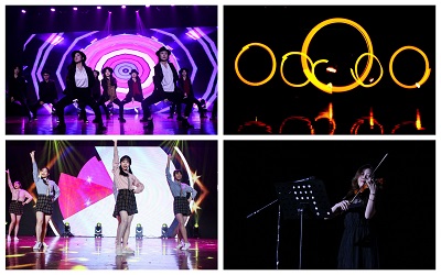 舞蹈类节目有2015级辅导员马骋老师、2018级辅导员张逗老师和我院研究生同学们带来的热辣潇洒的合舞《Black》;2018级智电专业同学编排的动感酷炫的荧光舞《光影青春》;大一大二同学组合带来的清新甜美的舞蹈《我的未来有点甜》;2018级辅导员缪甜佳老师和大一女生们带来的轻盈温婉的《茉莉花》,尽管风格不同,但他们的每一个舞步、动作都牵动着全场观众的心神。