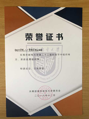 南京邮电大学第二十届“创新杯”表彰大会暨“中国移动”大学生科技节顺利闭幕,本次科技节活动我院分团委荣获优秀组织奖。