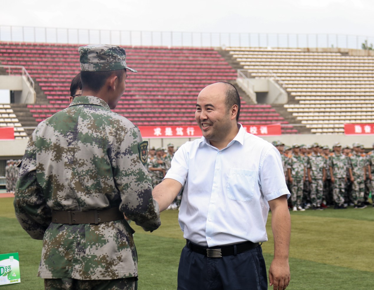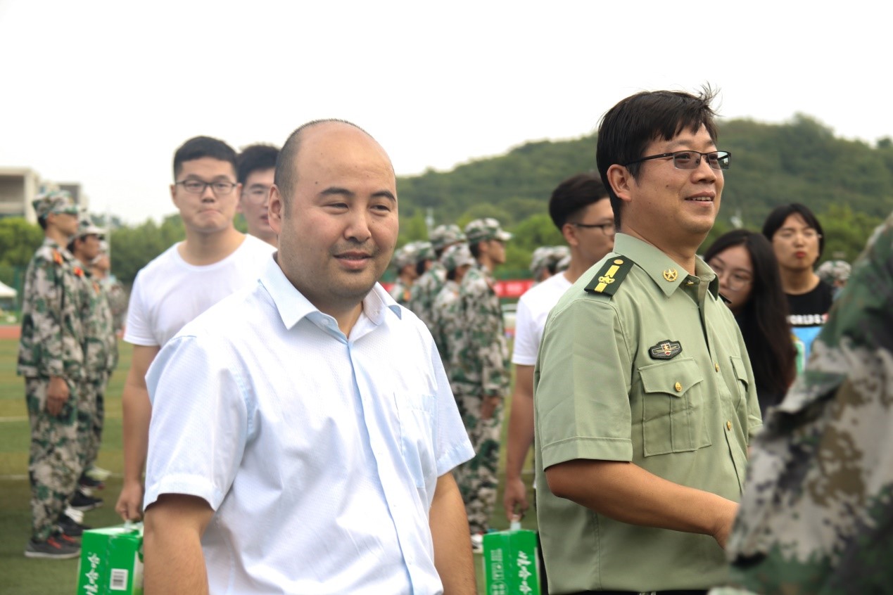 最后,领导们向教官们表达了诚挚的谢意,并强调新生军训作为新生入学教育的关键阶段,必须要严格执行训练任务,对学生严格要求,做到在磨炼意志,提高身体素质的同时,也能让新生积极适应大学生活。慰问之余,学院领导为教官和新生送去了饮品,让他们在刻苦的训练中感到一丝慰藉。