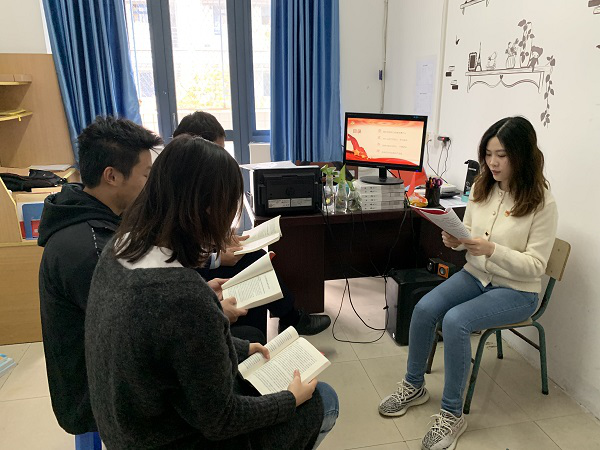 缪甜佳书记首先与大家交流了自己对于“初心、使命”的感悟与体会。她指出:“中国共产党人的初心和使命是为中国人民谋幸福、为中华民族谋复兴。当下我们的初心就是为全体师生做好服务,努力解决问题,进一步增强全体师生的幸福感。使命要求我们要有恪尽职守的工作态度,认真负责,不惧苦累,为我校的建设与发展贡献出自己的力量”。