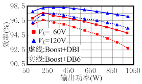 图7 基于DI-DBI(DB6)的准单级和传统两级式DC/AC系统测试效率对比