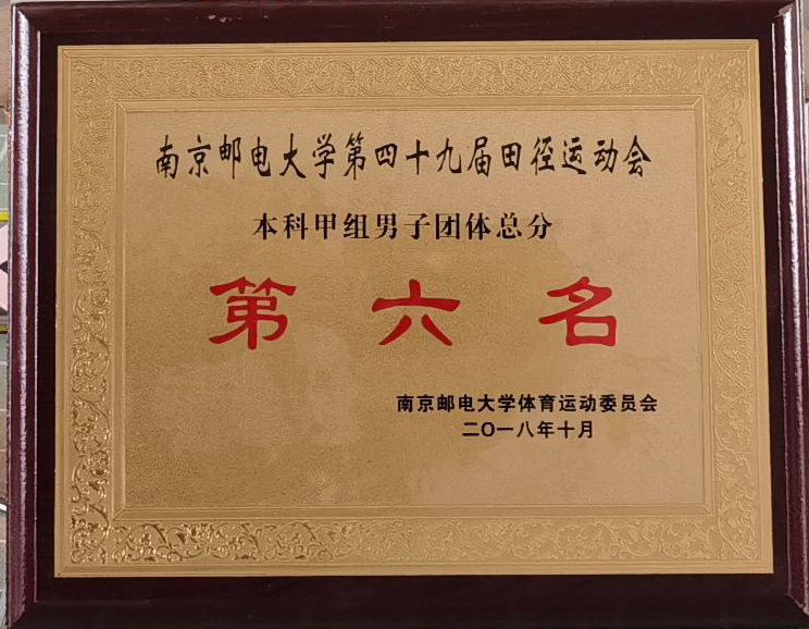 我院本组甲组男子团体在南京邮电大学第四十九届田径运动会上荣获第六名