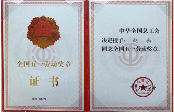 喜报! 热烈祝贺我院赵勃老师荣获全国五一劳动奖章