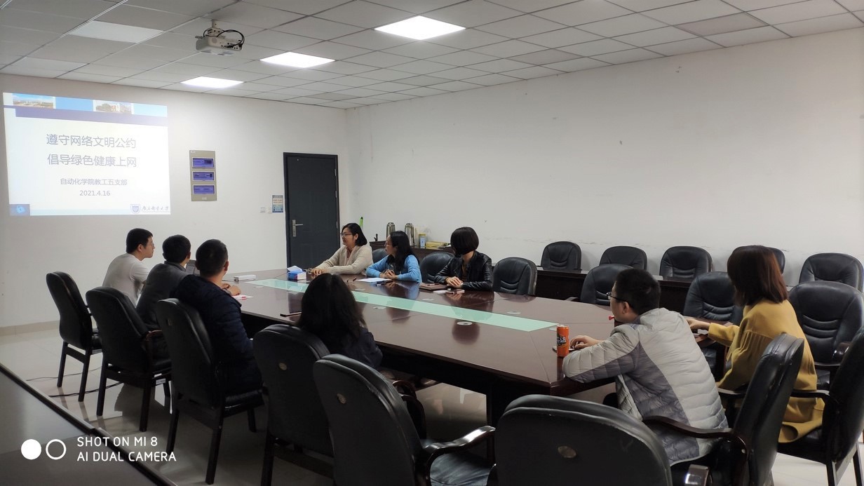 教工五支部组织全体党员及支部所在自动化系部分教师代表,开展了主题为“遵守网络文明公约,倡导绿色健康上网”宣传讲座及知识问答等网络文明实践活动。