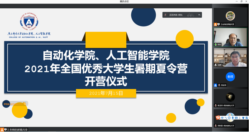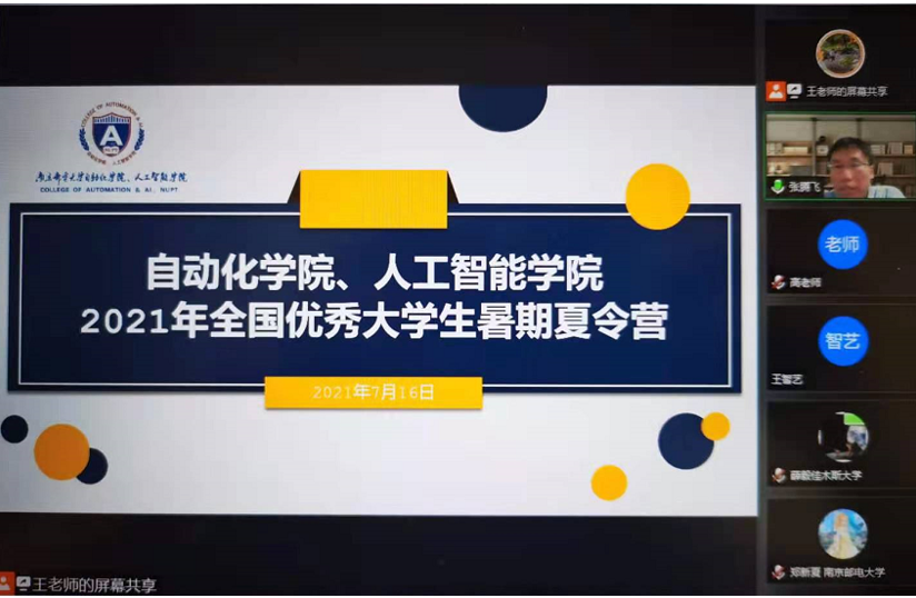 为加强全国优秀本科生对南京邮电大学自动化学院、人工智能学院研究生培养工作的进一步了解,吸引并选拔优秀本科生攻读自动化学院、人工智能学院硕士研究生,715日至16日学院顺利举办“2021年全国优秀大学生暑期夏令营”。本次夏令营以线上腾讯会议的形式开展,通过个人材料提交、学院审核选拔的方式,招收来自全国多所高校的学员,共计99人。
