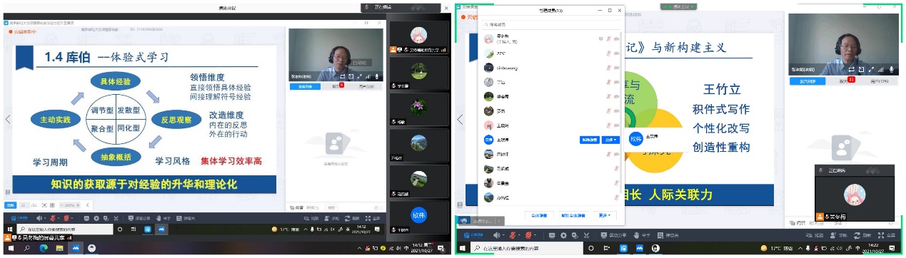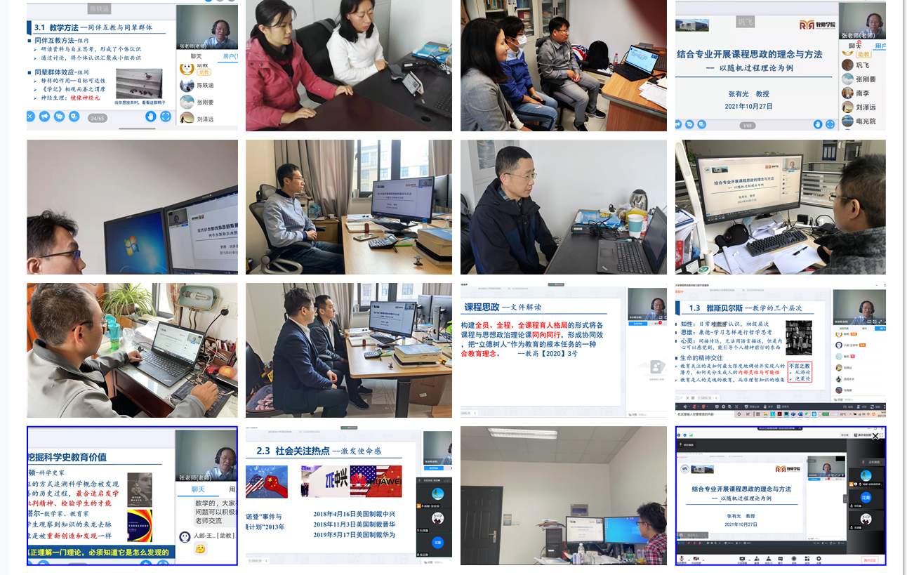 此次培训分为6个主题:《结合专业开展课程思政,实现教书与育人》、《立足课程育人 践行教育初心——创新创业课程思政的探索与实践》、《基于探究项目构建师生学习共同体——以<电子信息工程导论>课程为例》、《基于分步式案例驱动的 <数据结构>课程思政》、《教学探索“马哲学+新时代+专业课”三维一体课程思政体系建设——以《Python 人工智能实现》课程为例》、《“马哲学+新时代+专业课”三维一体课程》、《思政体系建设——以<PMP 高级项目管理师>课程为例》。