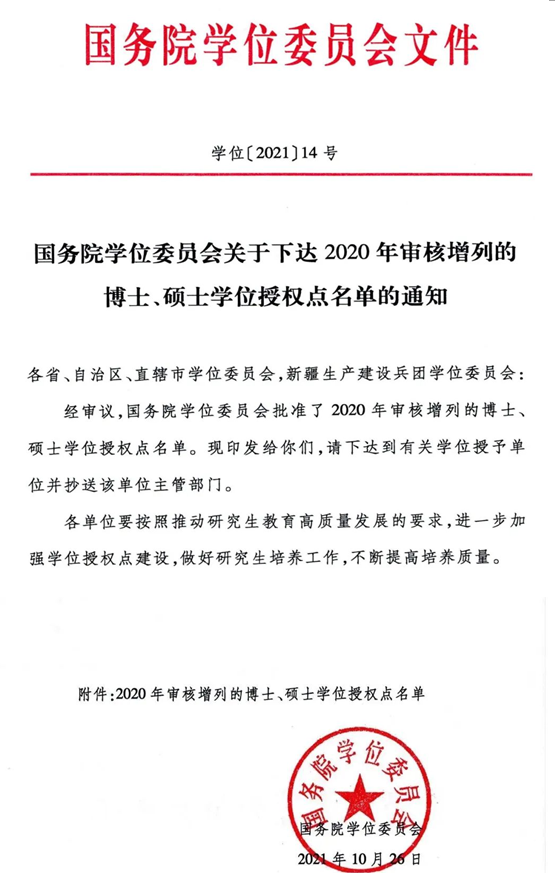 近日,国务院学位委员会发布了《关于下达2020年审核增列的博士、硕士学位授权点名单的通知》(学位〔2021〕14号)。经国务院学位委员会审议批准,我院控制科学与工程获批一级学科博士学位授权点,电气工程获批一级学科硕士学位授权点,标志着我院学科建设取得突破性进展。