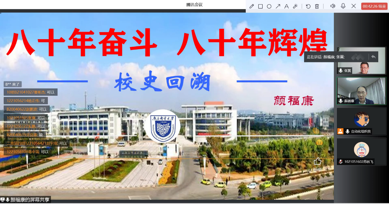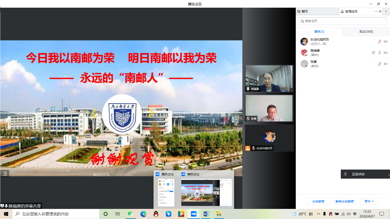 4月27日,南京邮电大学自动化学院、人工智能学院入党积极分子聆听了由校关工委颜福康老师带来的“八十年奋斗、八十年辉煌”红色校史主题讲座。根据学校疫情防控要求,本次讲座全程采用线上形式开展。