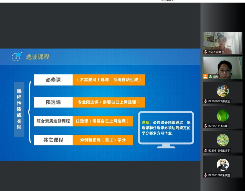 为帮助2022级新生了解学籍相关政策与教学相关的管理规章制度,在教务处学业指导中心的指导下,我院于10月19日14:00、19:00举行2022级新生学籍政策宣讲活动,两次宣讲会由教务处田甜老师担任主讲,新生辅导员和全院2022级新生线上参加会议。