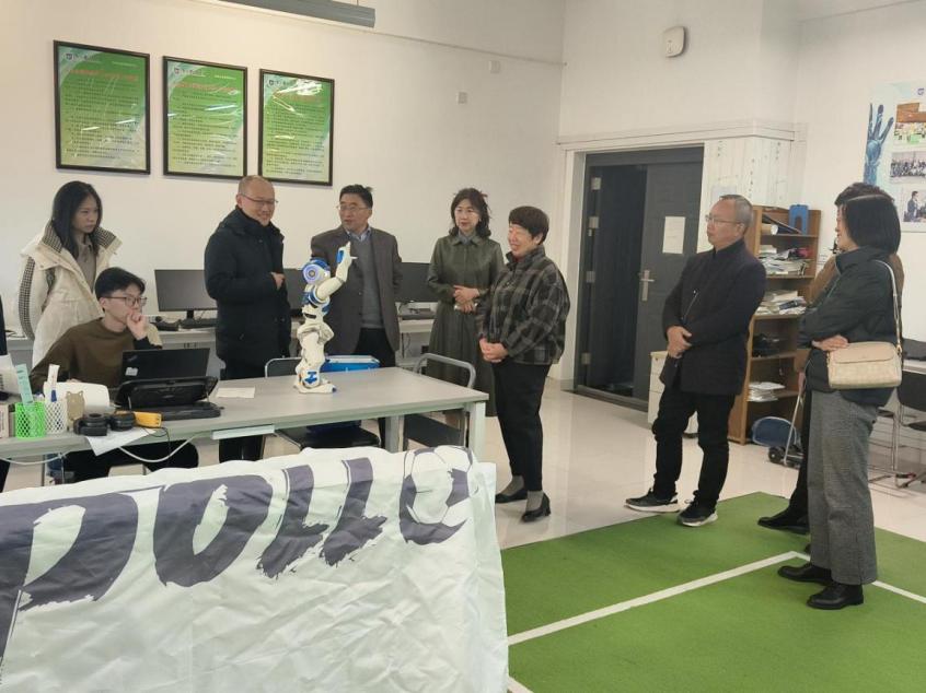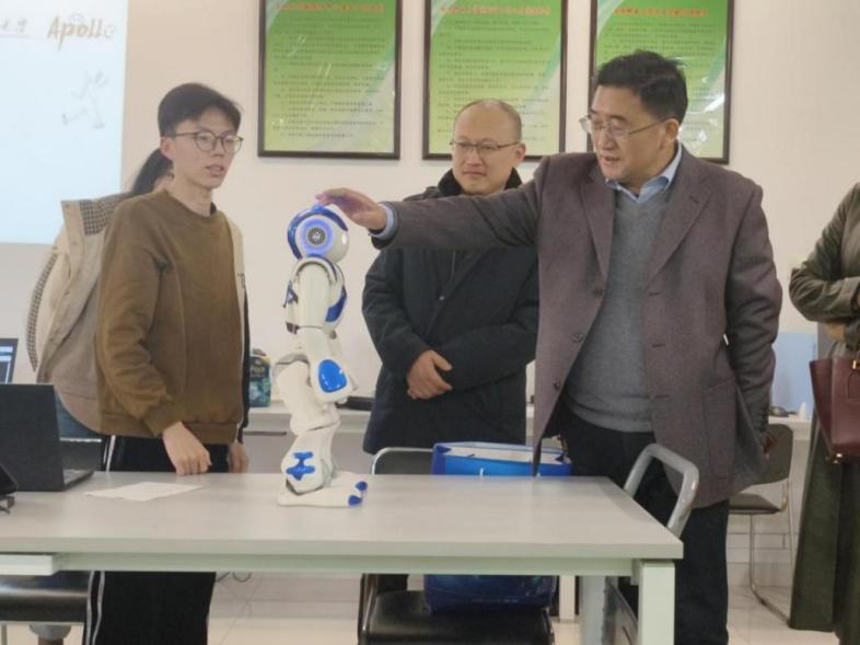 针对小学生开展校外社会实践活动问题,调研组首先实地参观了学院阿波罗俱乐部机器人实验室,初步了解了智能机器人技术发展前沿,对学院实验室技术社会贡献度及对外交流情况给与了肯定。