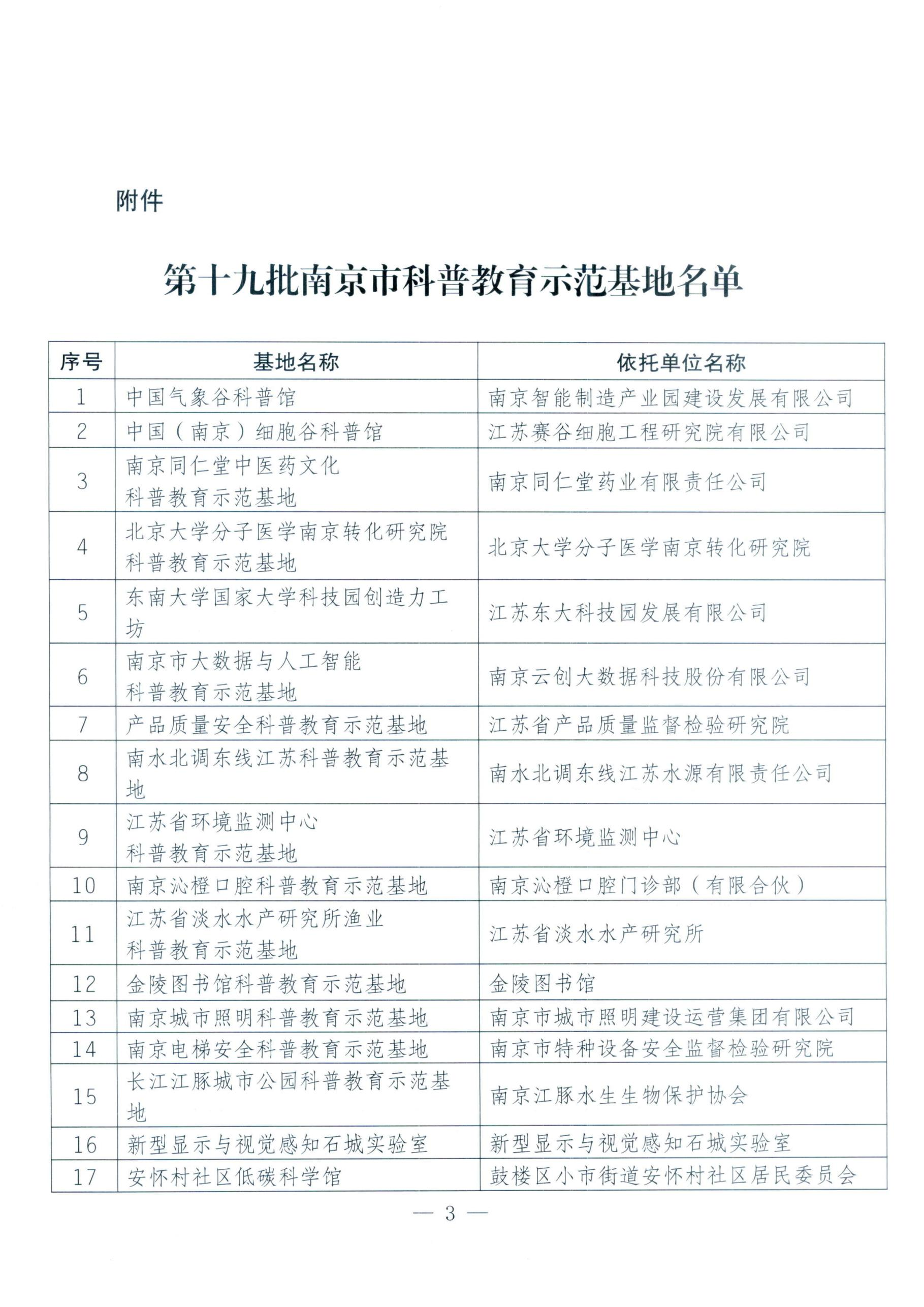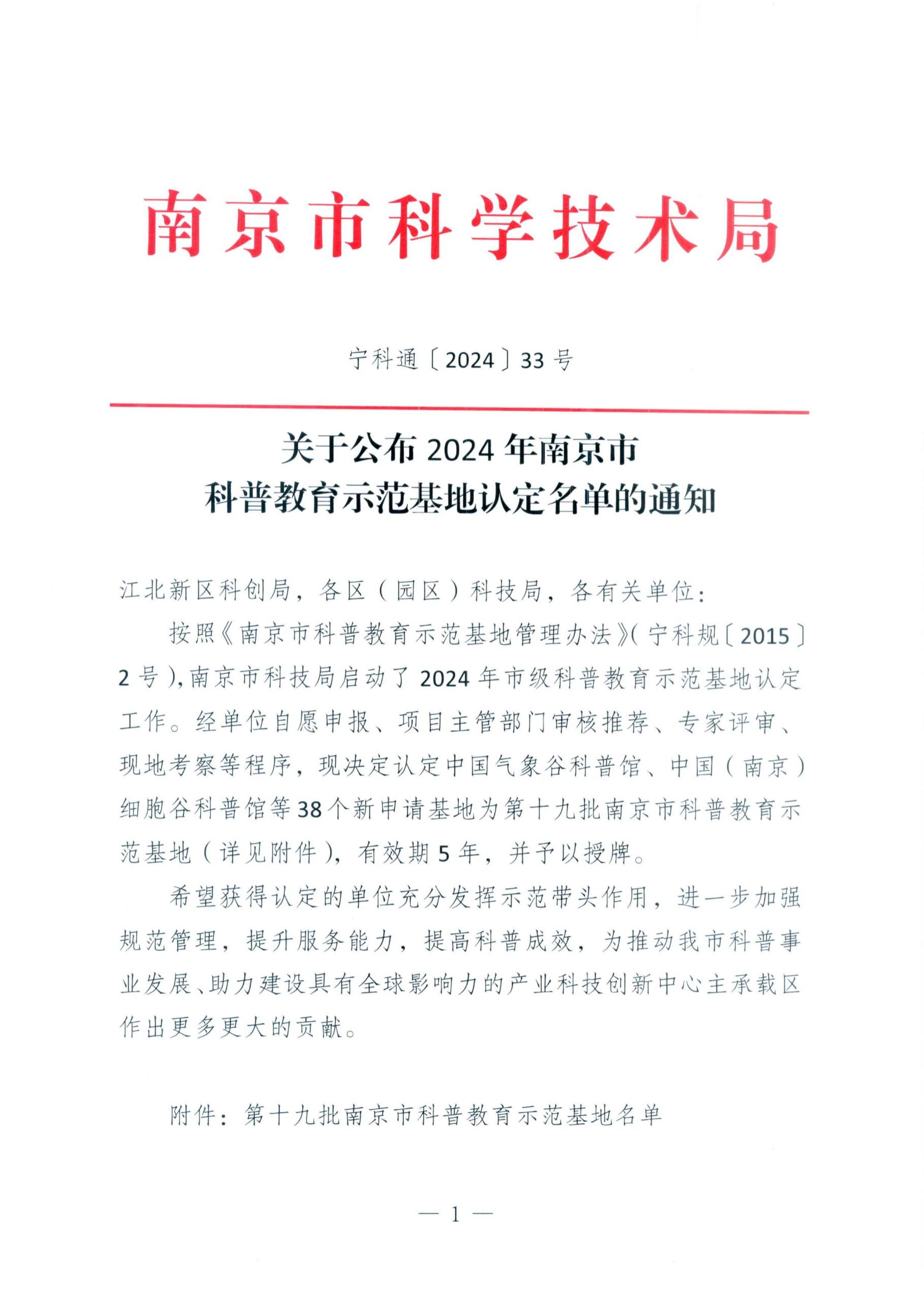热烈祝贺我院荣获“南京市科普教育示范基地”称号