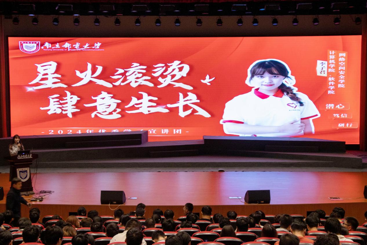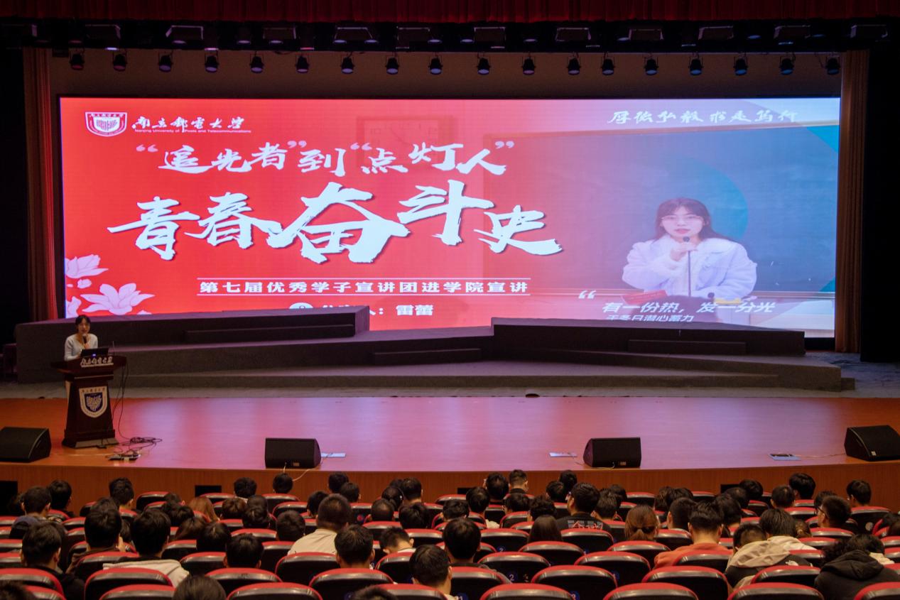 为持续推进“学在南邮”优良学风建设工作,确保学风建设工作提质增效。充分发挥各类先进典型在学生成长中的示范引领作用,打造“用身边人讲身边事,用身边事影响身边人”的朋辈教育理念,传递“向榜样学习、与榜样同行”的精神内核。10月31日晚,校第七届优秀学子宣讲团走进自动化学院、人工智能学院,500余名师生于青春剧场内共上一堂信仰公开课、梦想公开课、思政公开课。学院党委副书记、副院长孙委委,辅导员桑学峰、齐沁儿出席。活动由齐沁儿老师主持。