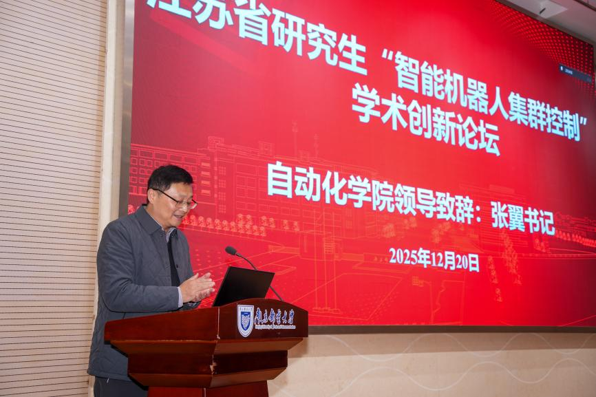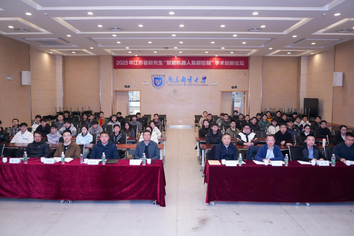 2025年12月20日,江苏省研究生“智能机器人集群控制”学术创新论坛在我校圆满召开。本次论坛由江苏省工学2类研究生教育指导委员会主办,南京邮电大学自动化学院、江苏省物联网智能机器人工程研究中心、具身智能与装备控制江苏省高校重点实验室等单位共同承办。来自全国高校及科研机构的专家学者与100余位研究生代表参加了此次论坛活动。