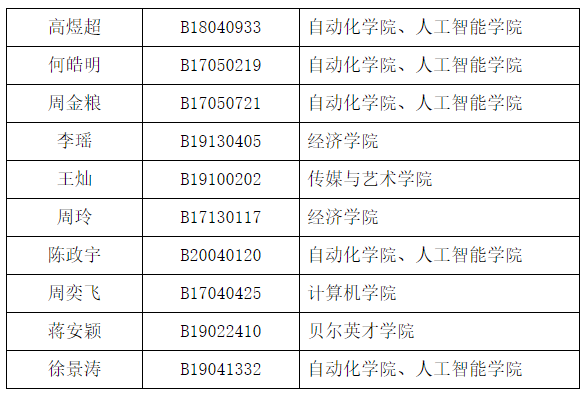 获奖学生名单