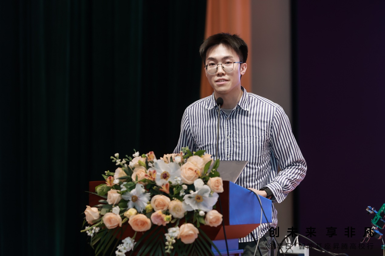 华为生态AI工程师高一方以《数智未来 因你而来》进行主题分享,他表示以多任务和泛化性为代表的大模型是AI科研创新走向产业应用的重要枢纽。华为深耕基础、厚植技术,坚定人工智能产业投入,为全产业带来了硬件开放、软件开源、使能伙伴的多重助力。